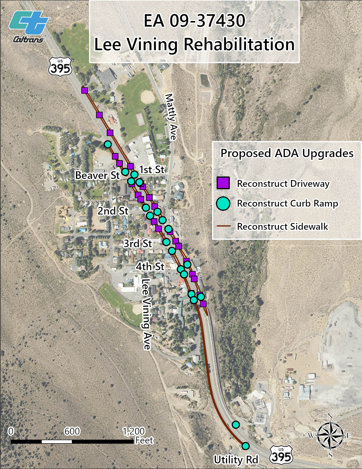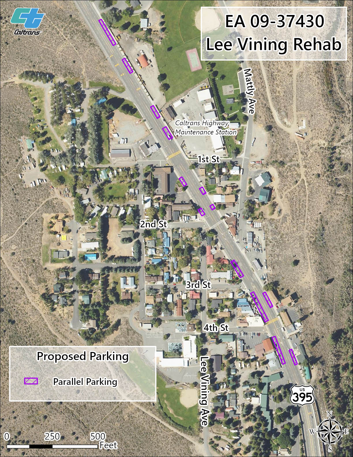 • Redesign of U.S 395 from a five-lane highway to a three-lane highway from just south of Lee Vining Avenue to just north of Lee Vining High School.