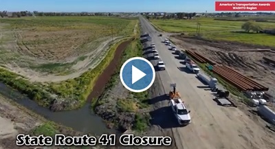 Caltrans’ Stratford Kings River Bridge project on State Route 41, which replaced a 78-year-old span with severe structural and seismic deficiencies, won the award in AASHTO’s “Operations Excellence, Medium Project” category. To accomplish the work, Caltrans engineers constructed a 330-foot successor span using a groundbreaking precast pier cap system developed jointly with the University of Nevada. The featured technology allowed the work to proceed with fewer environmental impacts and improved safety protocols for workers.