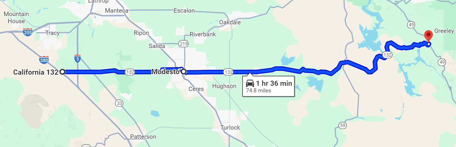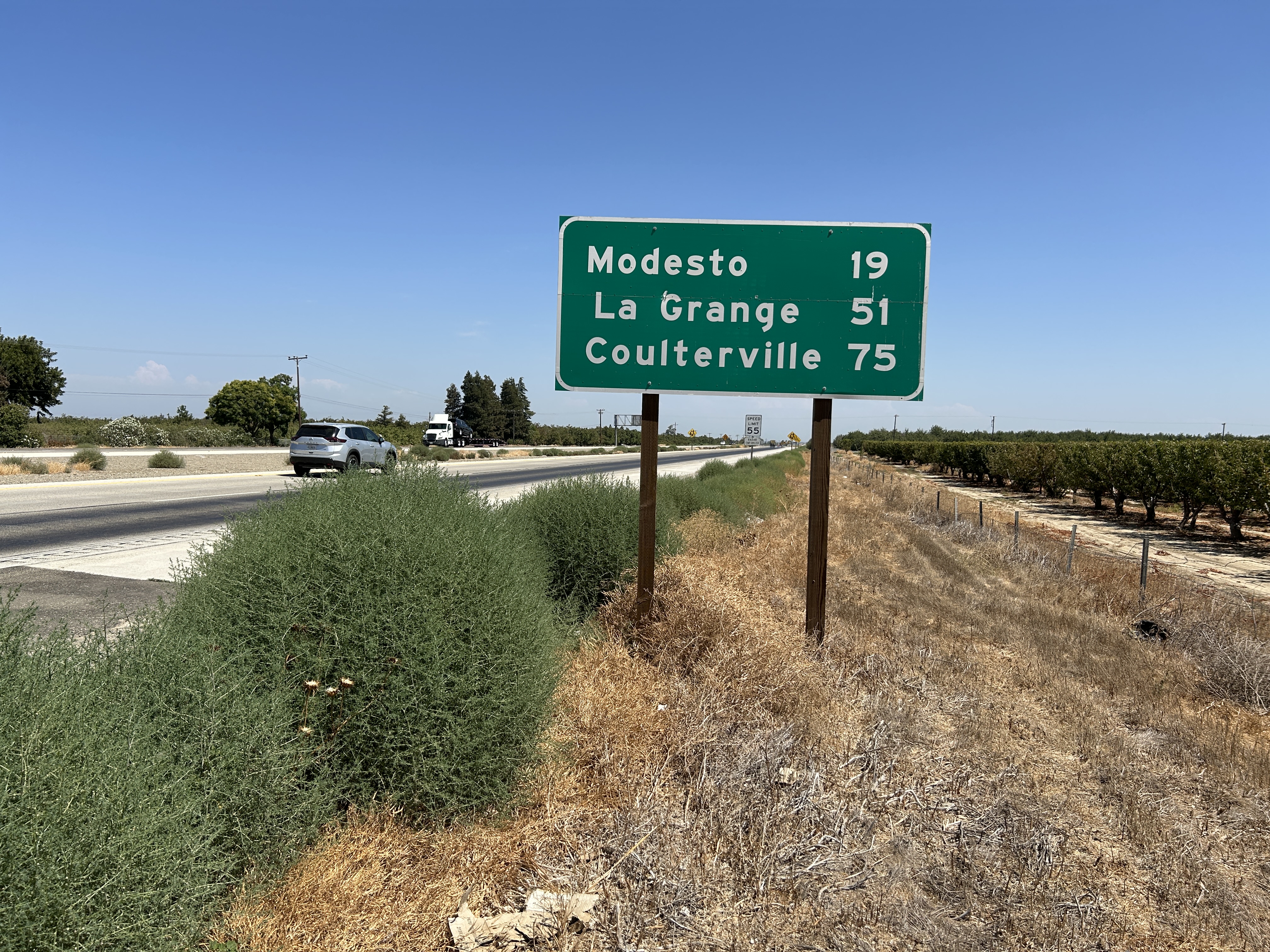 CT News reprises Road Trippin', which rolls along and photographs California's many Caltrans-overseen state highways. This time we sample some of the visual highlights beside SR 132, which range from Central Valley typical to somewhat-gritty-city Modesto to gently sloping hills that lead to the Sierra Nevada. This 75-mile roadway has a dark past: On March 5, 1983, near SR 132's eastern terminus at Coulterville, three Secret Service agents who were providing advance security for British Queen Elizabeth's visit to nearby Yosemite National Park died in a head-one collision just past La Grange.