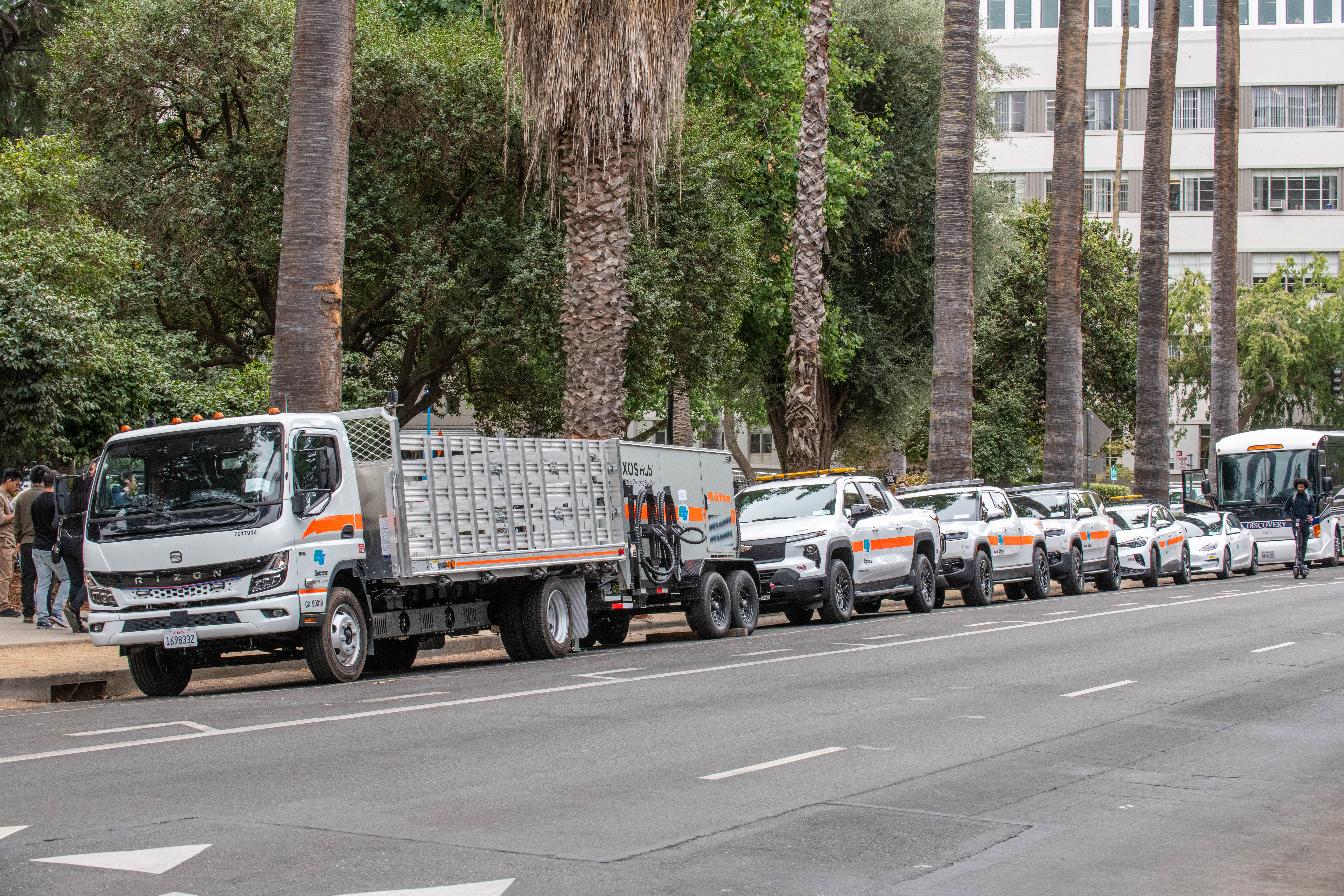 To help celebrate and promote National Drive Electric Month (Sept. 12-Oct. 12), a nationwide celebration to raise awareness of the many benefits of all-electric and plug-in hybrid cars, trucks, motorcycles and more, Caltrans displayed some of its e-fleet on Oct. 1 near the Capitol's west steps. (Headquarters photos by John Milne and Scott Lorenzo)