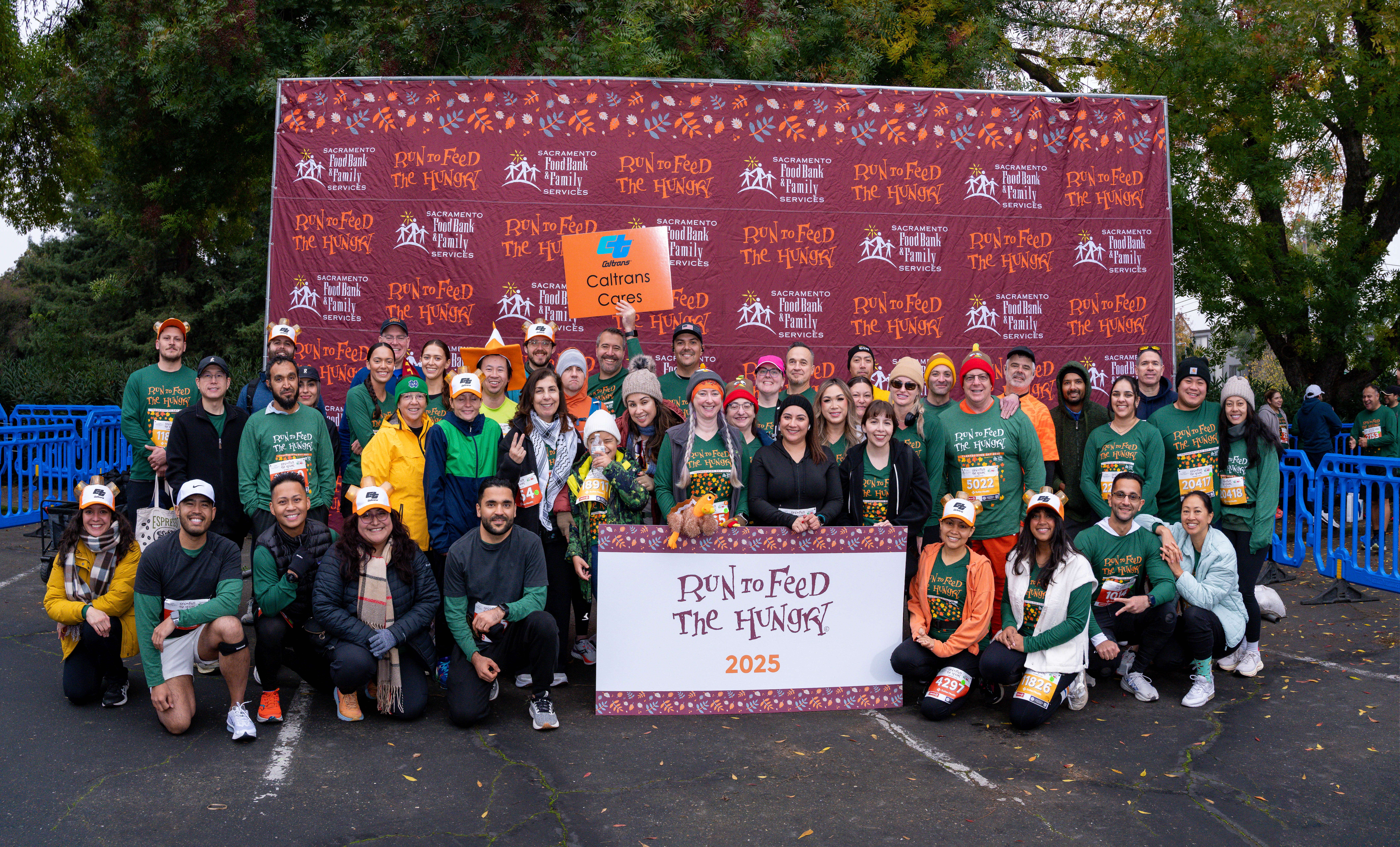Caltrans colleagues chipped in for charity by participating in the annual Run to Feed the Hungry turkey trot on Thanksgiving morning in Sacramento.